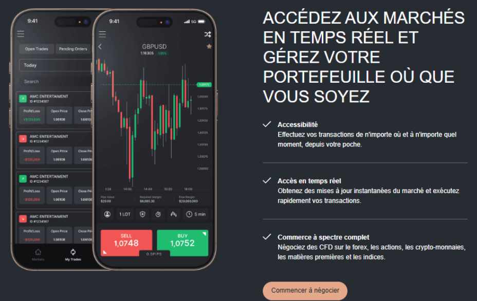L’environnement de trading combine un accès multi-actifs, des comptes à niveaux différenciés et un processus d’inscription structuré. La plateforme ne promet pas de résultats irréalistes, mais fournit une infrastructure claire pour permettre aux traders de gérer leurs propres stratégies.